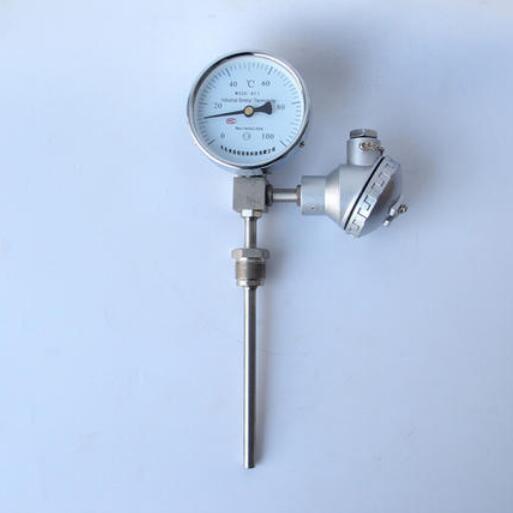 耐震遠傳雙金屬溫度計既滿足現(xiàn)場測溫需求,也可以滿足遠距離信號傳輸需求(遠傳信號有Pt100信號、K型熱電偶、E型熱電偶、4~20mA電流信號輸出),耐震遠傳雙金屬溫度計可以直接測量各種生產(chǎn)過程中的-80~+500℃范圍內(nèi)液體、蒸氣和氣體介質(zhì)以及固體表面的溫度測量。該耐震遠傳雙金屬溫度計從設計原理及結構上具有防水、防腐蝕、耐震動、讀數(shù)直觀、信號遠傳、無***害、堅固耐用等特點,耐震遠傳雙金屬溫度計廣泛應用于石油、化工、機械、船舶、發(fā)電、紡織、印染等工業(yè)和科研部門。